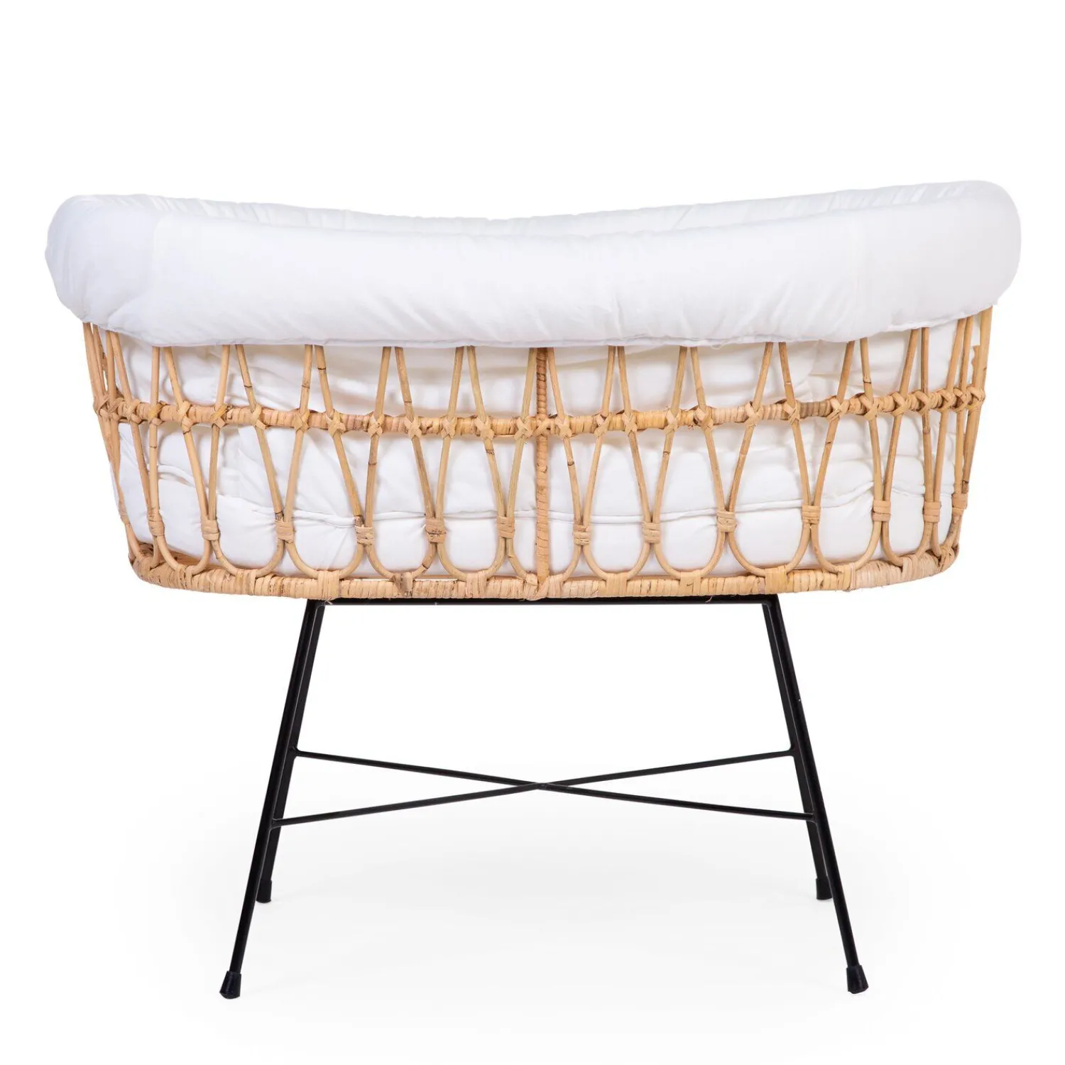 Magnifique berceau en rotin qui apporte une ambiance bohème à votre intérieur. Le berceau mesure 70x51x90cm et est très stable grâce à son soccle en métal très pratique à utiliser. Le berceau peut servir comme lit pour votre nouveau-né jusqu’à l’âge de 6 mois. Le berceau est fermé de chaque côté et fini par des formes rondes. Votre bébé s’y sentira immédiatement en sécurité. Le berceau est livré avec une housse et un matelas.