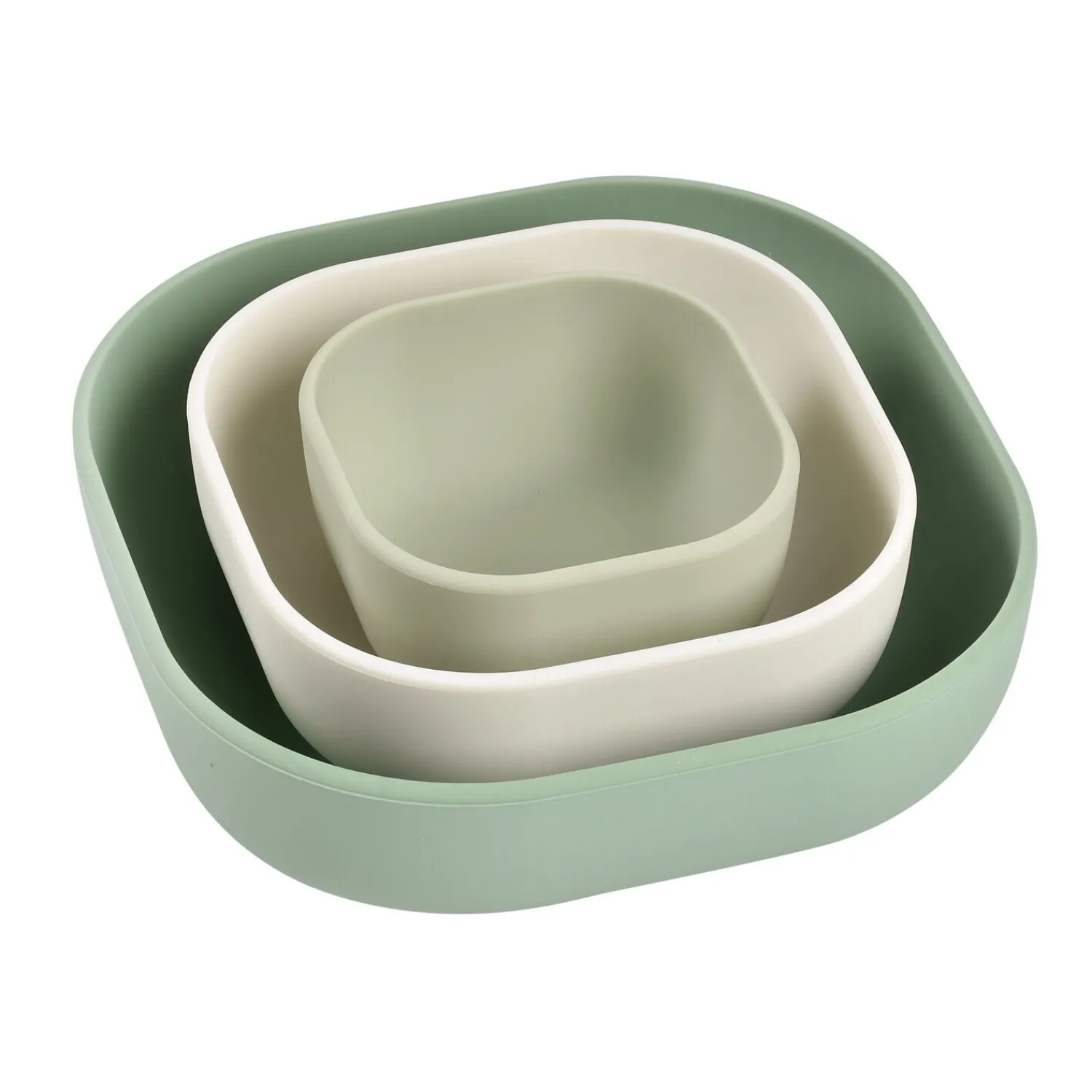 BÉABA Goûter Sain|Couverts Vaisselle Et Bavoirs*Lot de 3 bols silicone gigogne Vert sauge