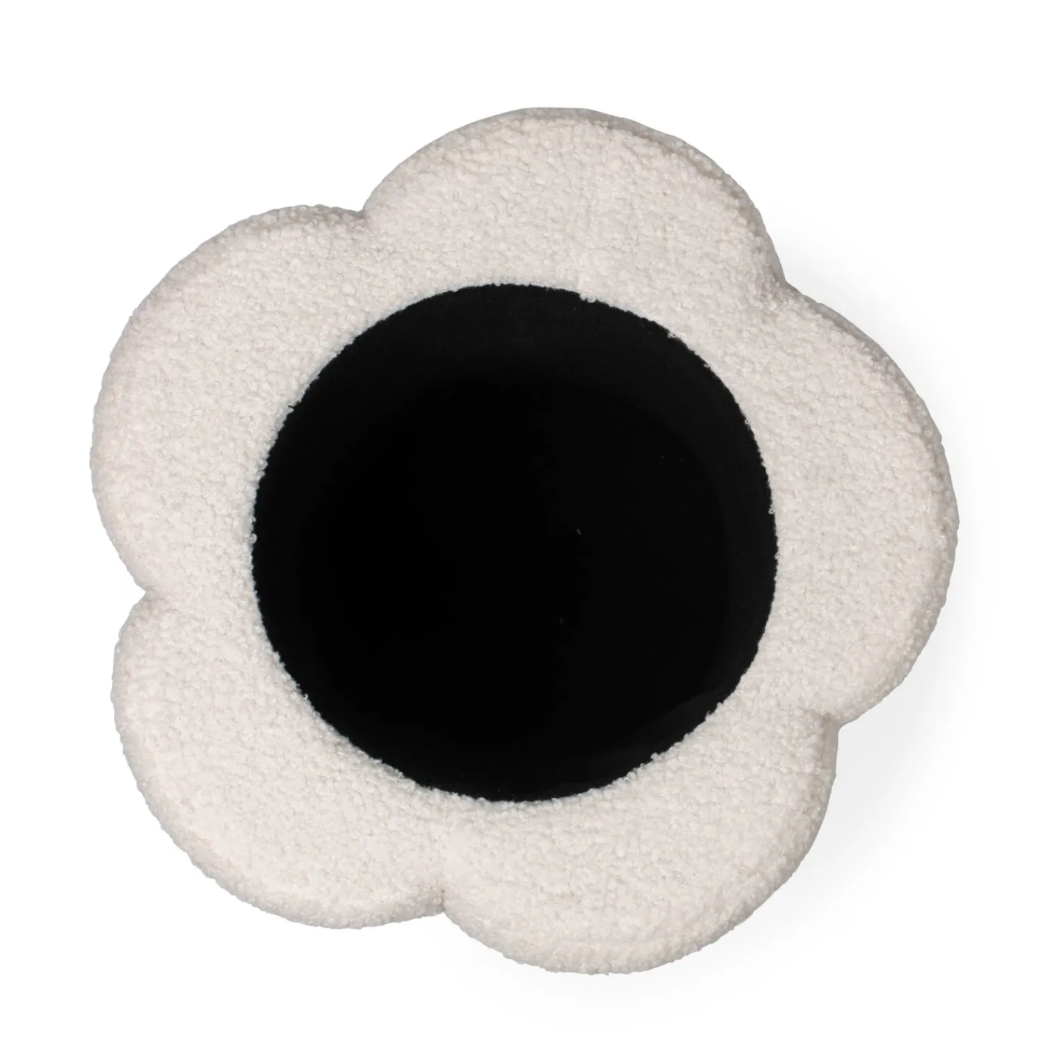 Ce magnifique pouf en forme de fleur est aussi un coffre à jouets ! Il est composé de teddy blanc cassé très tendance et de teddy jaune clair au centre.