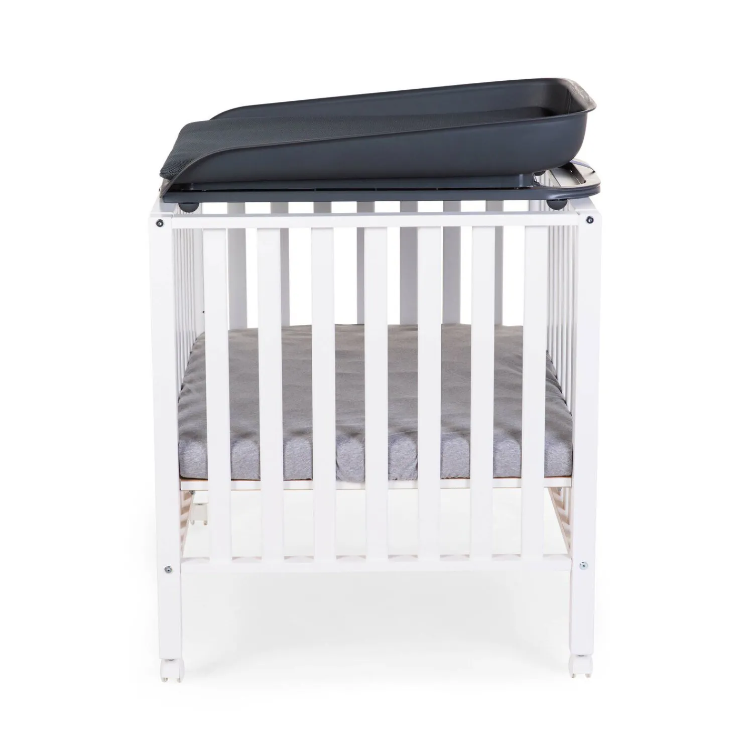 Notre plan à langer Evolux en anthracite est l’outil idéal pour changer les couches de manière sûre. Grâce à sa grande structure en métal, l’unité de soins peut facilement être placée sur des lits bébé et des parcs. Le plan à langer Evolux est équipé d’un matelas de toilettage en mesh 3D respirant et lavable.Le plan à langer ne peut être utilisée que sur un lit bébé ou un parc dont les dimensions intérieures sont comprises entre 59,8 cm et 61 cm pour la plus petite position et entre 69,8 cm et 71 cm pour la plus grande position.Attetnion: utilisez toujours les ceintures de sécurité lorsque vous souhaitez fixer l’unité sur le parc ou le lit.
